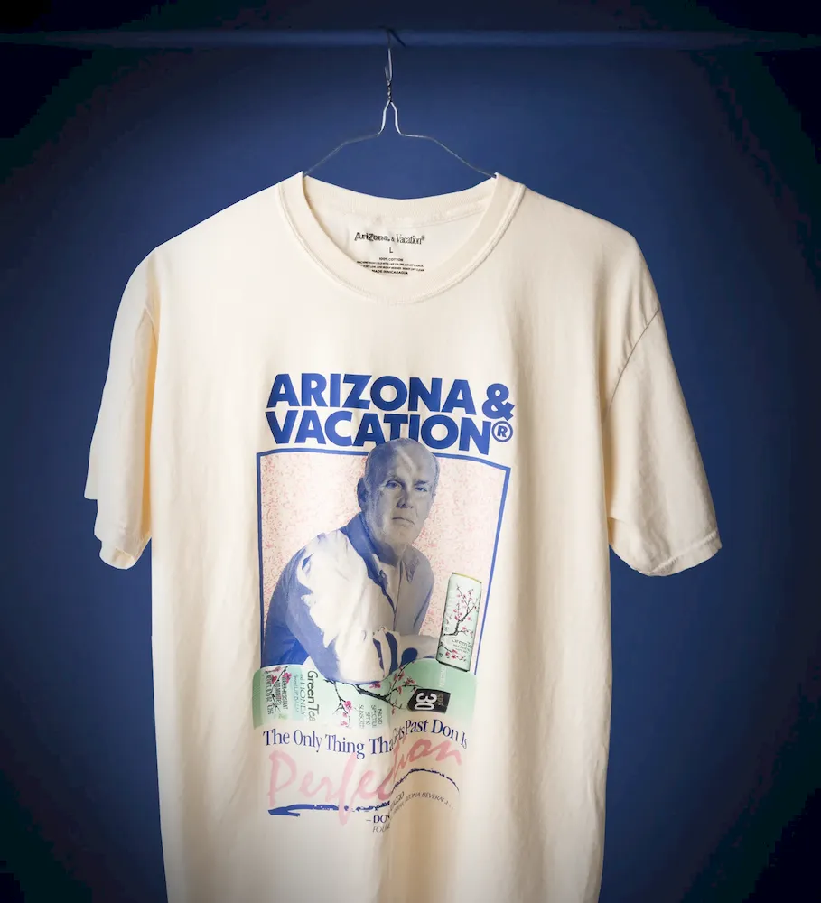 Celebrate leisure, brand partnerships, and “perfection” with this shrink-free, premium woven cotton T-shirt endorsed by Mr. Don Vultaggio, Founder & Chairman of the AriZona Beverage Company.