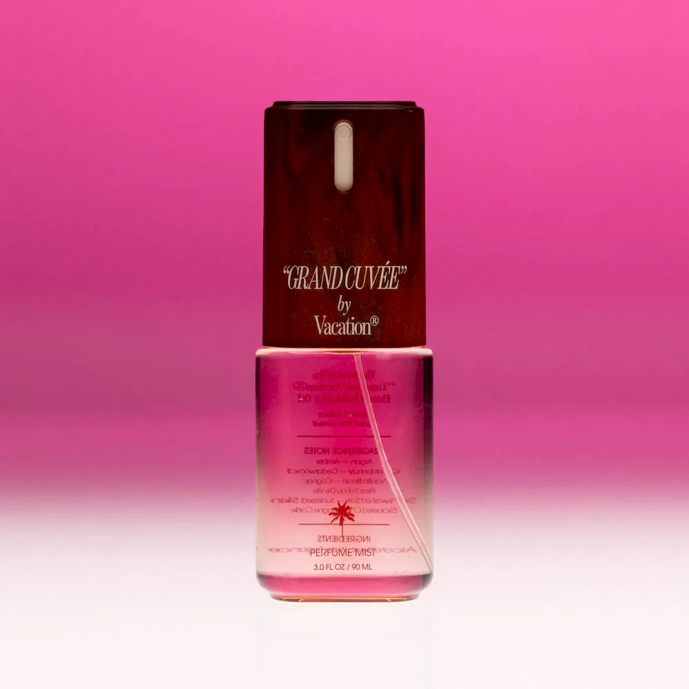 The award-winning scent of “GRAND CUVÉE” by Vacation® Eau de Toilette, now in a lighter, convenient mist format. Spritz it on its own, or layer it over Vacation® sunscreen for a scent that transports you ‘port side’ atop a teakwood-decked yacht, with notes of Argan, Amber, Vanilla Bean, Peach Eau de Vie, a hint of Sunwashed Sails & more.