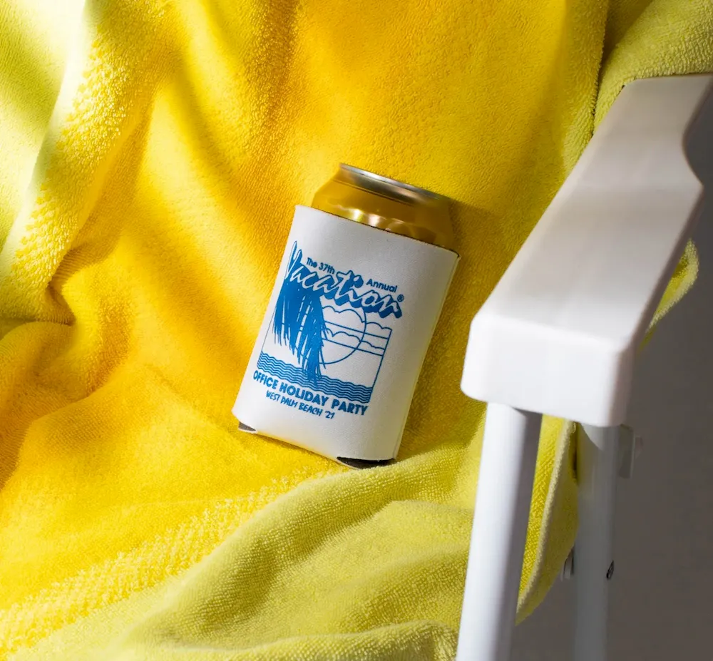 It’s not a party without a signature Vacation® Office Holiday Party Beverage Sleeve. Keep your canned cocktails cool, both thermally and aesthetically, with this “Office Party Famous” refreshment insulator. The quintessential companion for any poolside get-together.