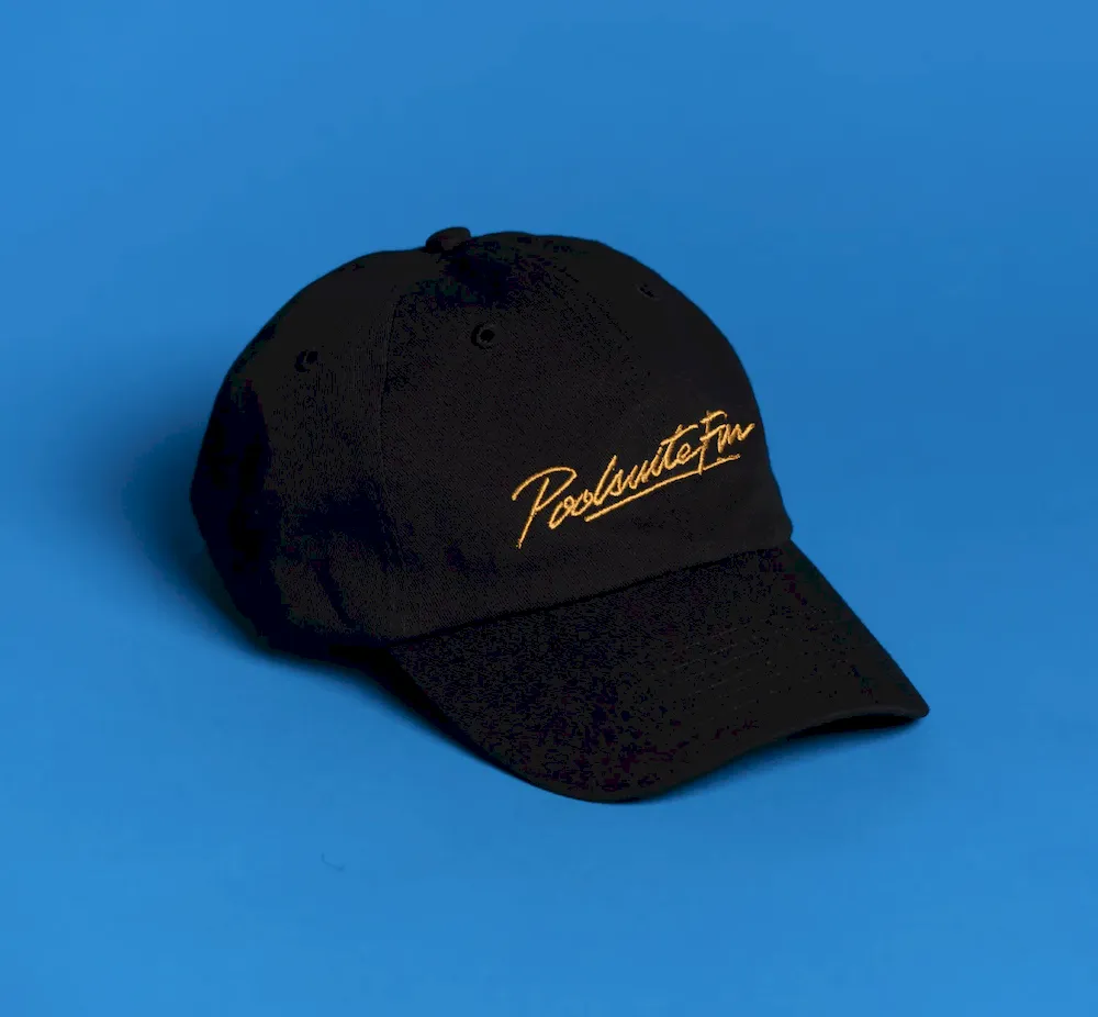 The finest in luxury internet radio meets the finest in wearable shade technology. The Poolsuite FM six panel cap is made from the finest cotton and adorned with premium “gold” embroidery.