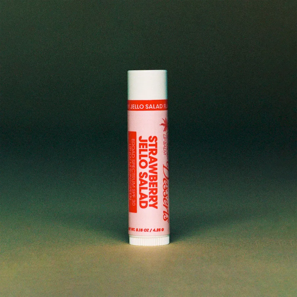 A delectable SPF 30 Lip Balm inspired by the iconic Strawberry Jello Salad dessert that boasts world-class flavor, lip nourishment, and broad-spectrum protection.