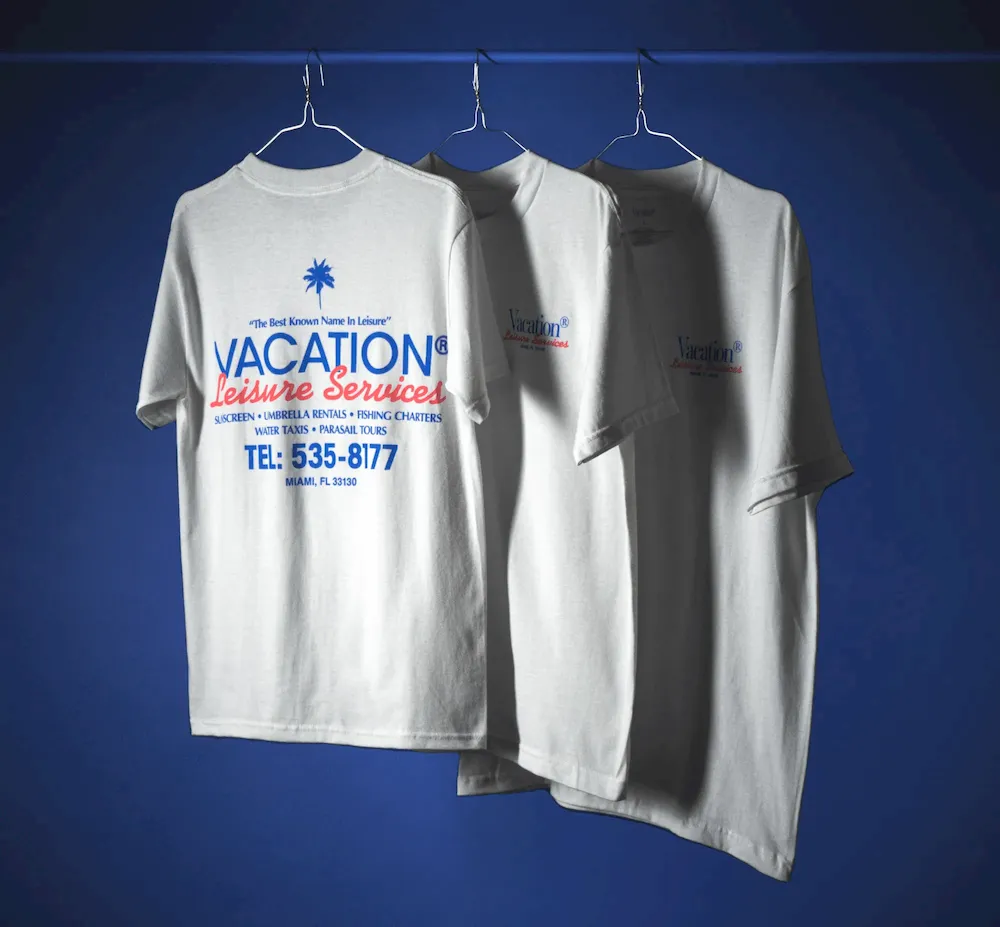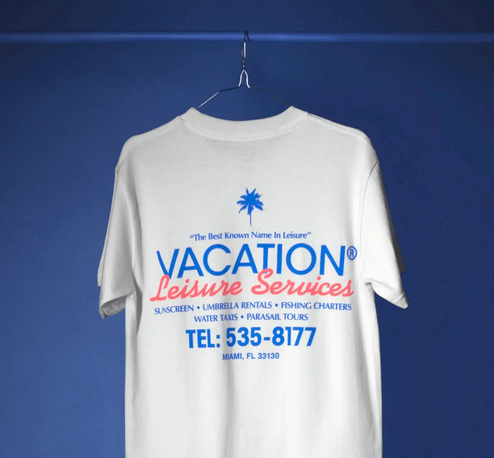 Umbrella rentals, fishing charters, water taxis, parasail tours and, of course, sunscreen. Back before Vacation® Sunscreen was Vacation® Sunscreen, legend has it, it was a mixed leisure services business on the beaches of Miami, USA. Enjoy this limited edition “reissue” of the t-shirts worn by staff during these humble beginnings.
